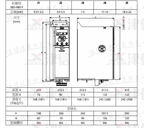 丹佛斯FC360變頻器的安裝尺寸如下:
