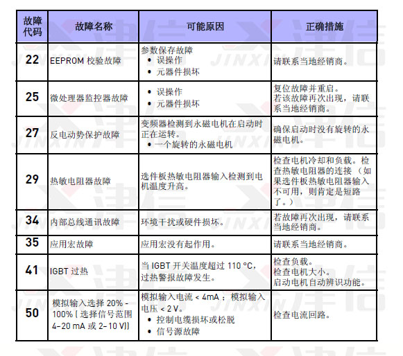 3、偉肯變頻器故障代碼22,25,27,29,34,35,41,50