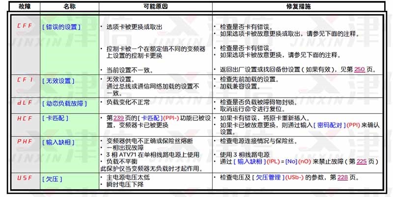 施耐德ATV71變頻器故障代碼和維修措施