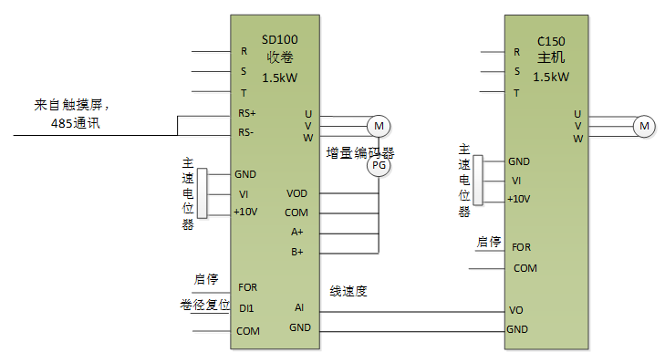 原收卷系統采用“變頻器+電機+磁粉+張力控制器”的模式,設備使用一段時間后需要對磁粉進行維護,且磁粉故障率較高,增加了廠家和客戶的故障點和維護成本;