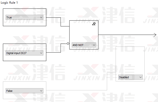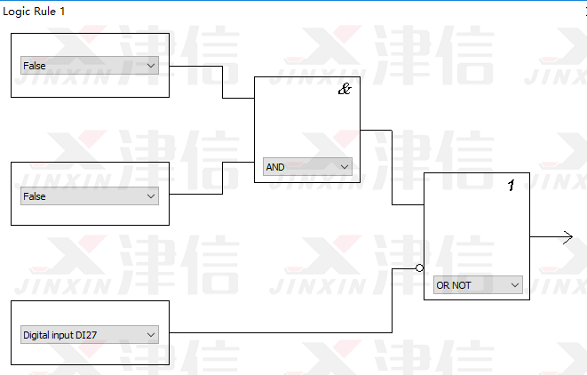 Logic Rule 1判斷是否符合停止條件。在運(yùn)行過程中,如果按下停止按鈕,27號端子斷開,經(jīng)過邏輯判斷,滿足停機(jī)要求,變頻器將停止輸出。