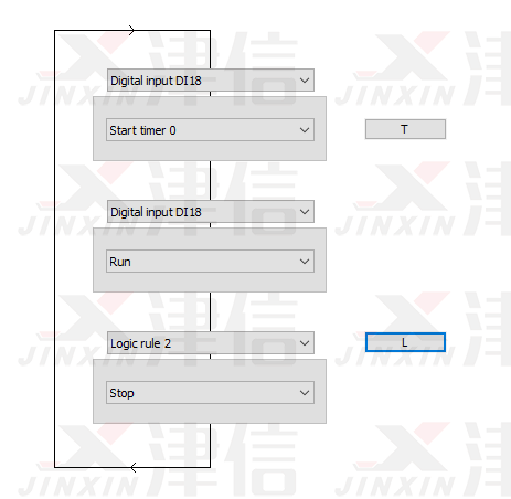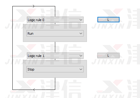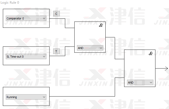 斷線停機(jī)功能通過SLC邏輯輔助完成。SLC邏輯流程圖如下,Logic Rule 0判斷是否符合啟動條件,Logic Rule 1判斷是否符合停止條件。