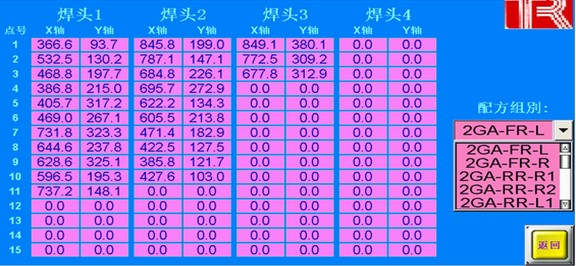 因設(shè)備所焊接的門板多達(dá)十幾種,而每個(gè)門板的焊接孔位置是不一樣的,所以需要使用配方功能,來實(shí)現(xiàn)同一臺(tái)設(shè)備焊接不同門板。設(shè)備配方所包含的功能如下: